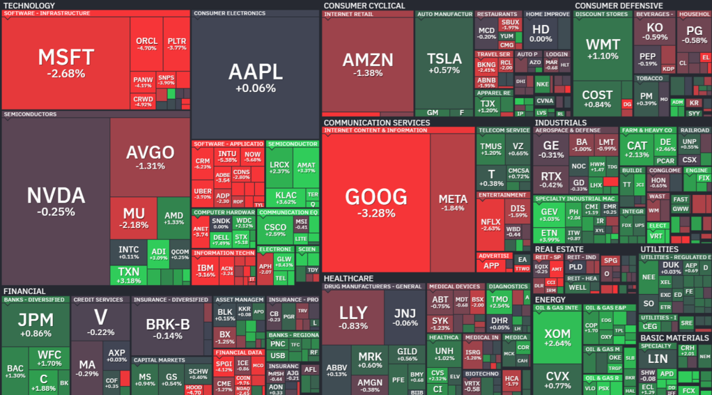 시가총액 상위 종목 가운데서는 알파벳이 3% 넘게 내린 것을 비롯해 엔비디아가 0.25%, 마이크로소프트가 2%, 아마존과 메타 등이 1% 가량 하락했습니다.