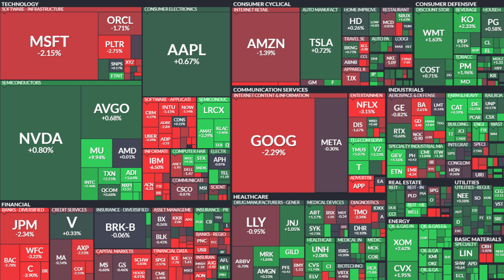 소비재와 인공지능(AI) 부문이 하락했지만, 금속 관련주가 강세를 연출하며 부분적으로 약세를 상쇄했습니다.