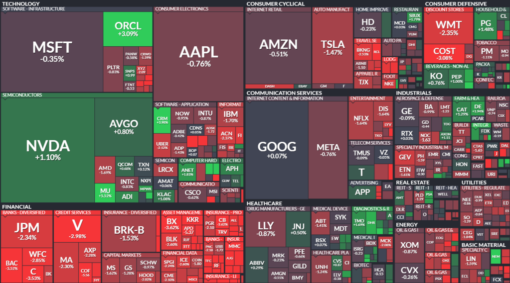 빅테크 종목들은 혼조세를 보였습니다. 테슬라, 애플, 아마존, 마이크로소프트, 메타, 팔란티어 등이 1% 가량 떨어진 반면 시가총액 1위 엔비디아는 1.10% 상승했습니다.