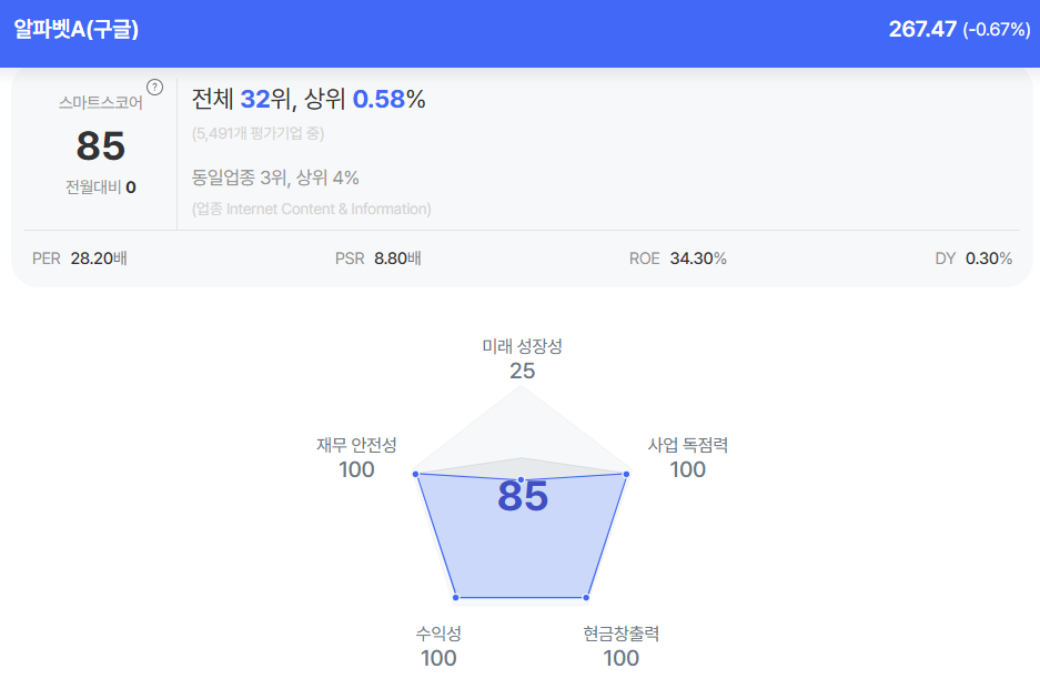 | 알파벳 종목 진단 (출처=초이스스탁) |