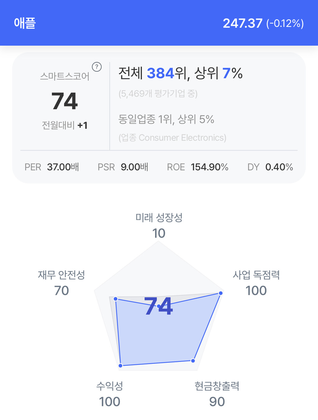 애플 주가는 0.12% 하락 후 247.37달러로 마감했다.