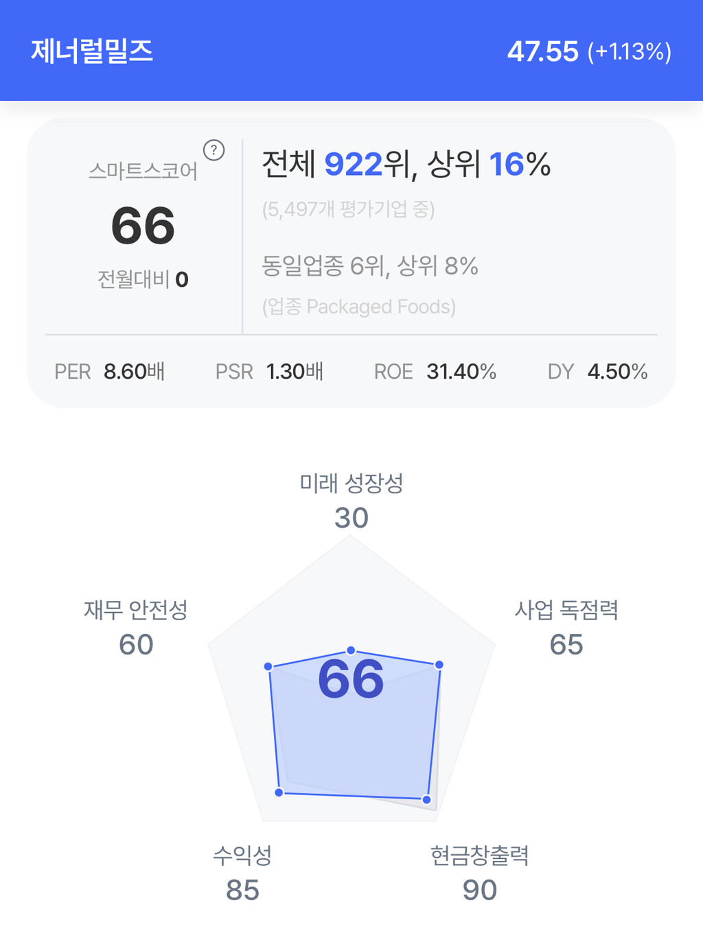 | 제너럴밀스 주가 분석. (자료=초이스스탁) |