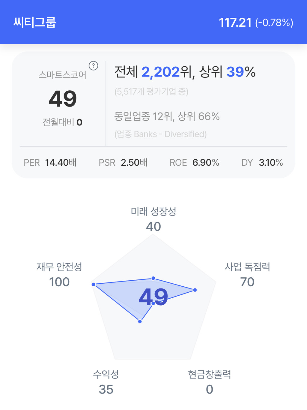 | 씨티그룹 주가 분석. (자료=초이스스탁) |