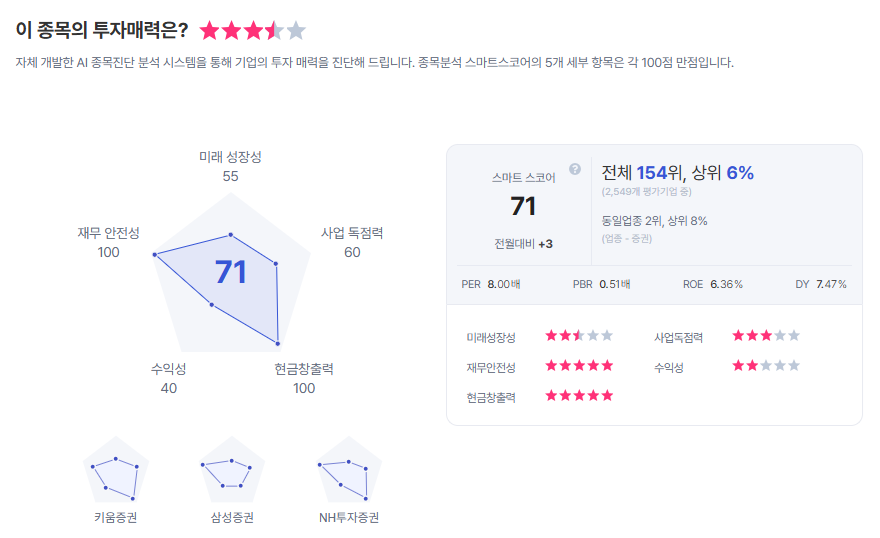 | 대신증권 종목진단 (출처=초이스스탁) |