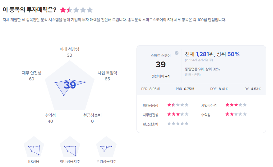 | 신한지주 종목진단 (출처=초이스스탁) |