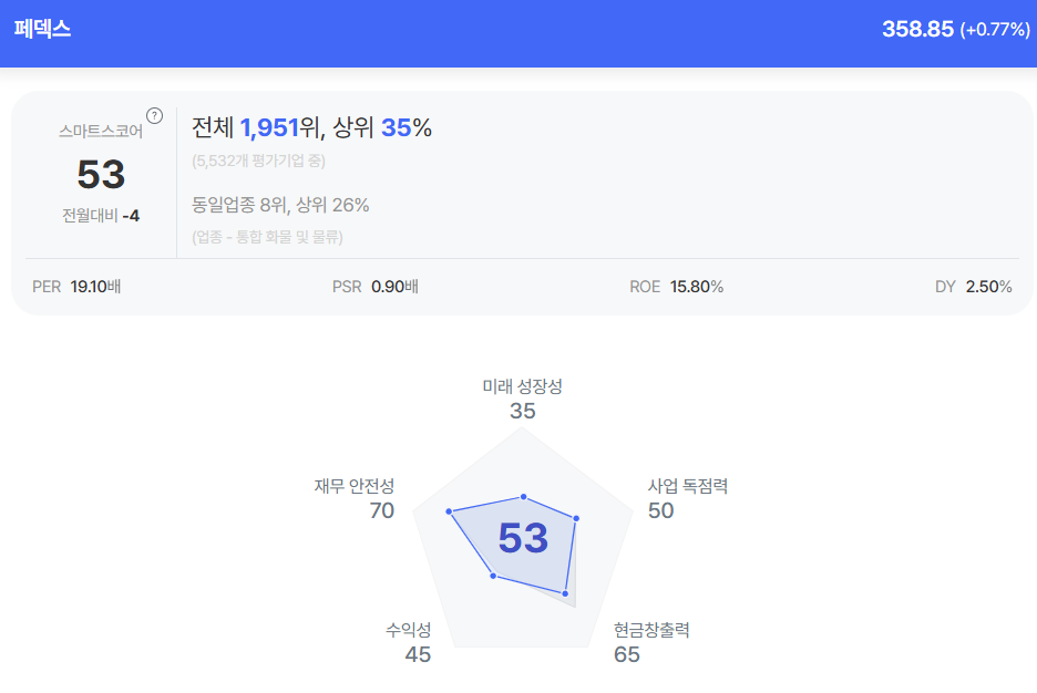 | 페덱스 종목진단 (출처=초이스스탁) |