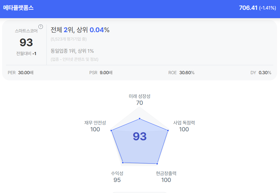 | 메타플랫폼스 종목진단 (출처=초이스스탁) |