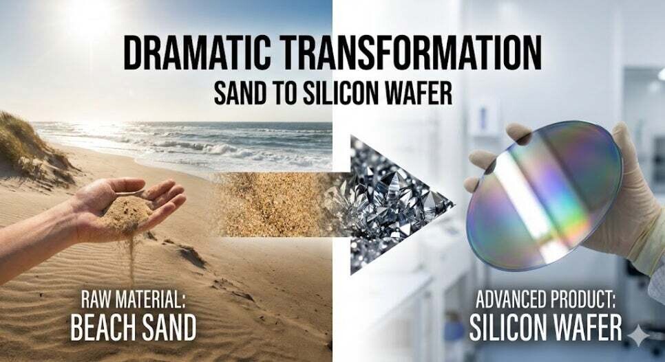 모래의 주성분인 이산화규소(SiO₂)에서 산소를 제거하면 규소(실리콘, Si)가 남는다. 하지만, 컴퓨터 칩이 되기 위해서는 상상을 초월하는 정제 과정이 필요하다.