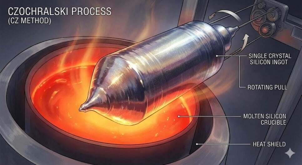 이 고순도 실리콘을 섭씨 2000도의 전기로에서 녹인 뒤, 씨앗 결정을 담가 천천히 회전시키며 뽑아 올리면 거대한 실리콘 기둥인 '잉곳(Ingot)'이 탄생한다.