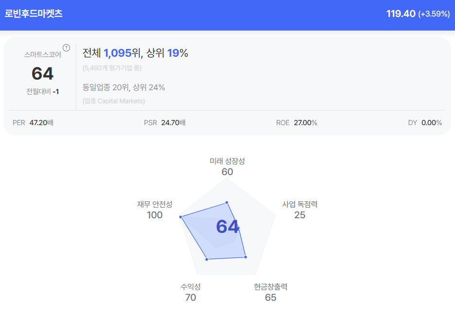 | 로빈후드 종목진단 (출처=초이스스탁) |