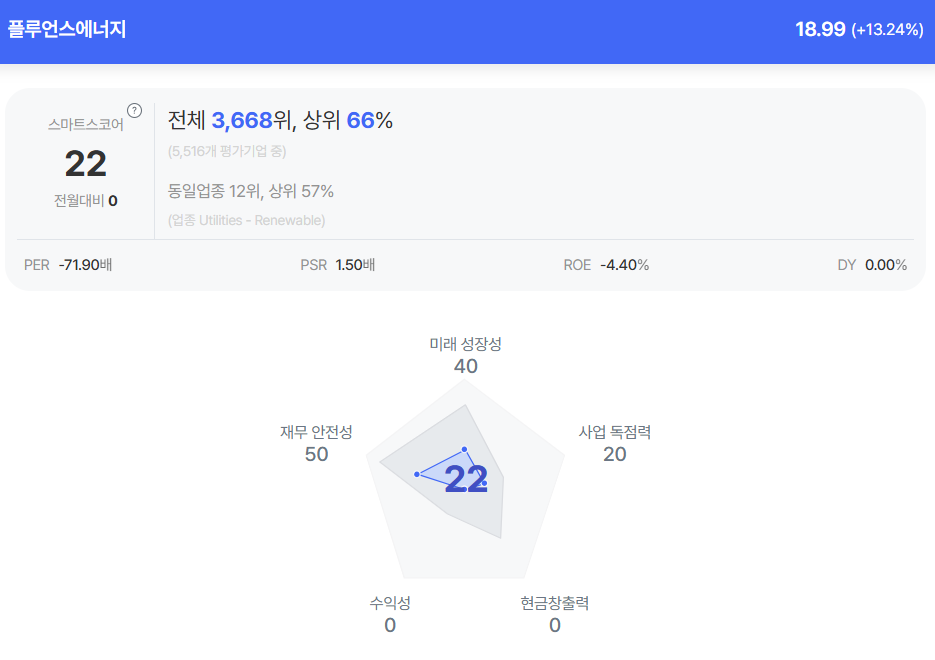 | 플루언스에너지 종목진단 (출처=초이스스탁) |