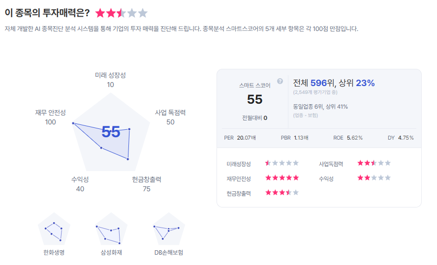 | 삼성생명 종목진단 (출처=초이스스탁) |