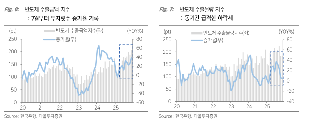 김지현 다올투자증권 연구원은 "반도체는 높은 ASP로 인해 수출 금액 증가세가 견조하다"며 "삼성정자의 1월 잠정 실적 확인 이후 이익 전망치 추가 상향 가능성이 존재해 이번주는 수급상 반도체 매수에 유리한 구간"이라고 판단했다.