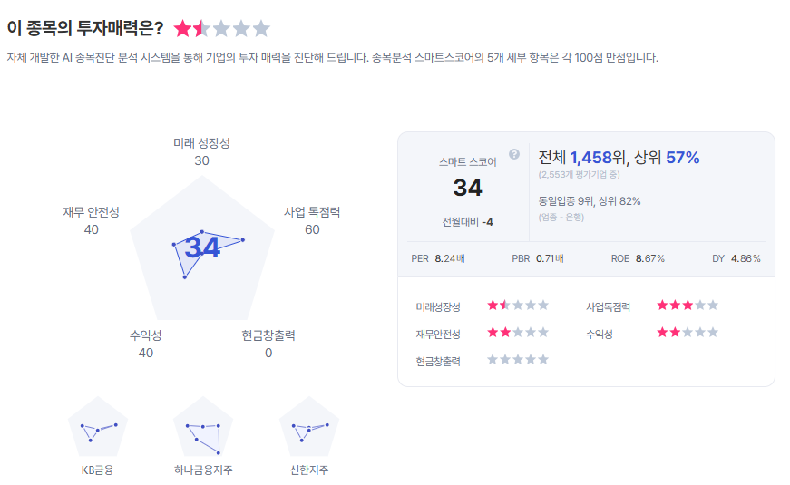 | 우리금융지주 종목진단 (출처=초이스스탁) |