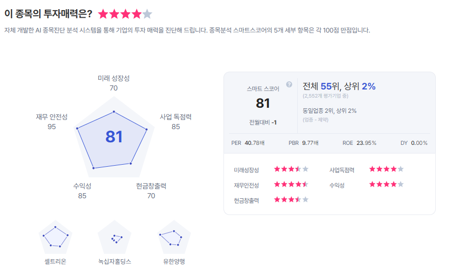 | 삼성바이오로직스 종목진단. (출처=초이스스탁) |