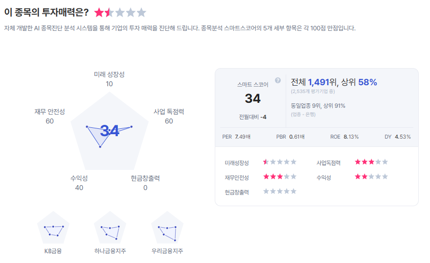 | 신한지주 종목진단 (출처=초이스스탁) |