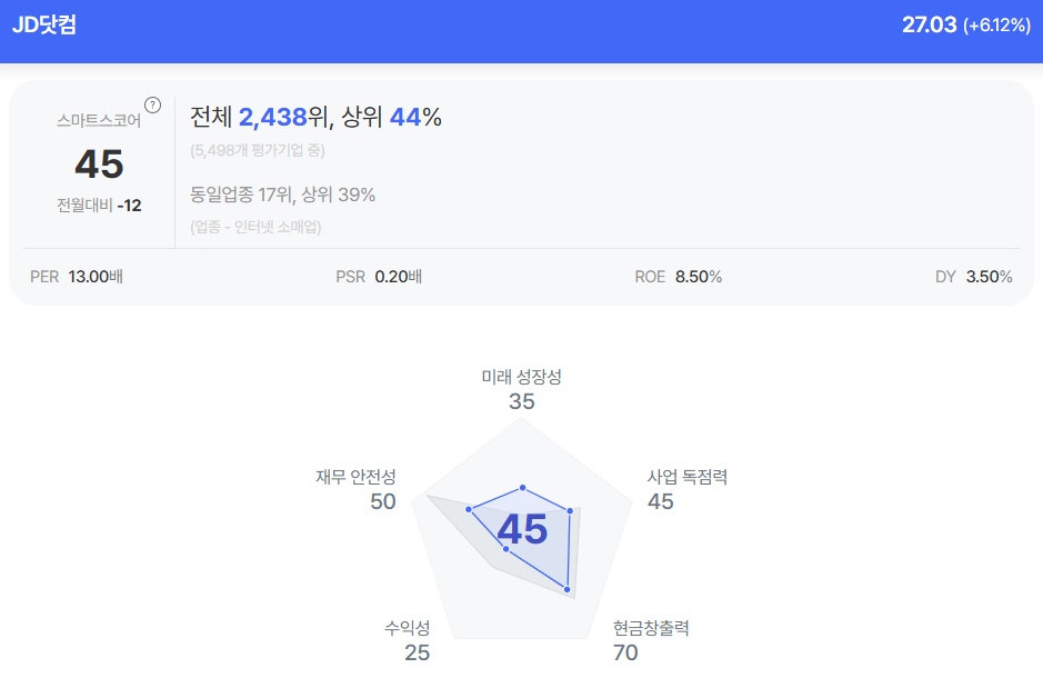 | JD닷컴 종목진단 (출처=초이스스탁) |