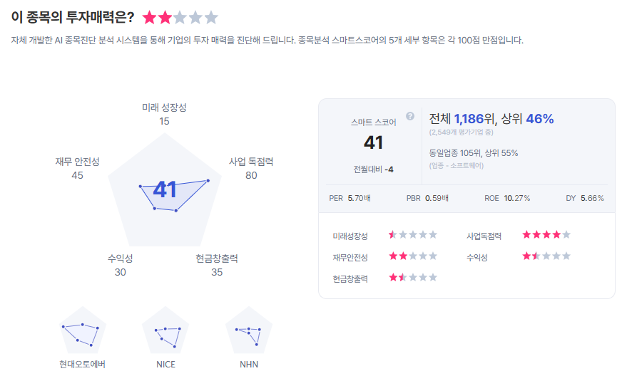 | KG이니시스 종목진단 (출처=초이스스탁) |