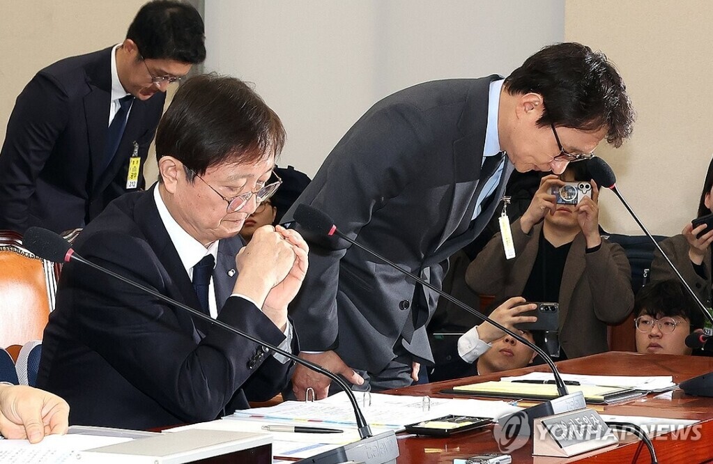 | 이재원 빗썸 대표이사가 11일 국회에서 열린 정무위원회 전체 회의에서 국내 가상자산거래소 빗썸에서 발생한 거액의 비트코인 오지급 사태를 놓고 긴급 현안질의에 답하기에 앞서 고개 숙여 사과하고 있다. (사진=연합뉴스) |
