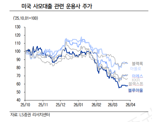 전배승 LS증권 연구원은 "미국과 유럽의 금융주 주가 또한 약세흐름이 이어지고 있으나 시장 대비 초과하락의 정도는 완화되고 있다"라며 "펀드런의 특성을 감안할 때 사모대출 리스크로 인한 은행 등 해외 금융권의 손실확산 및 이로 인한 금융위기 발생 가능성은 낮다"라고 평가했다.
