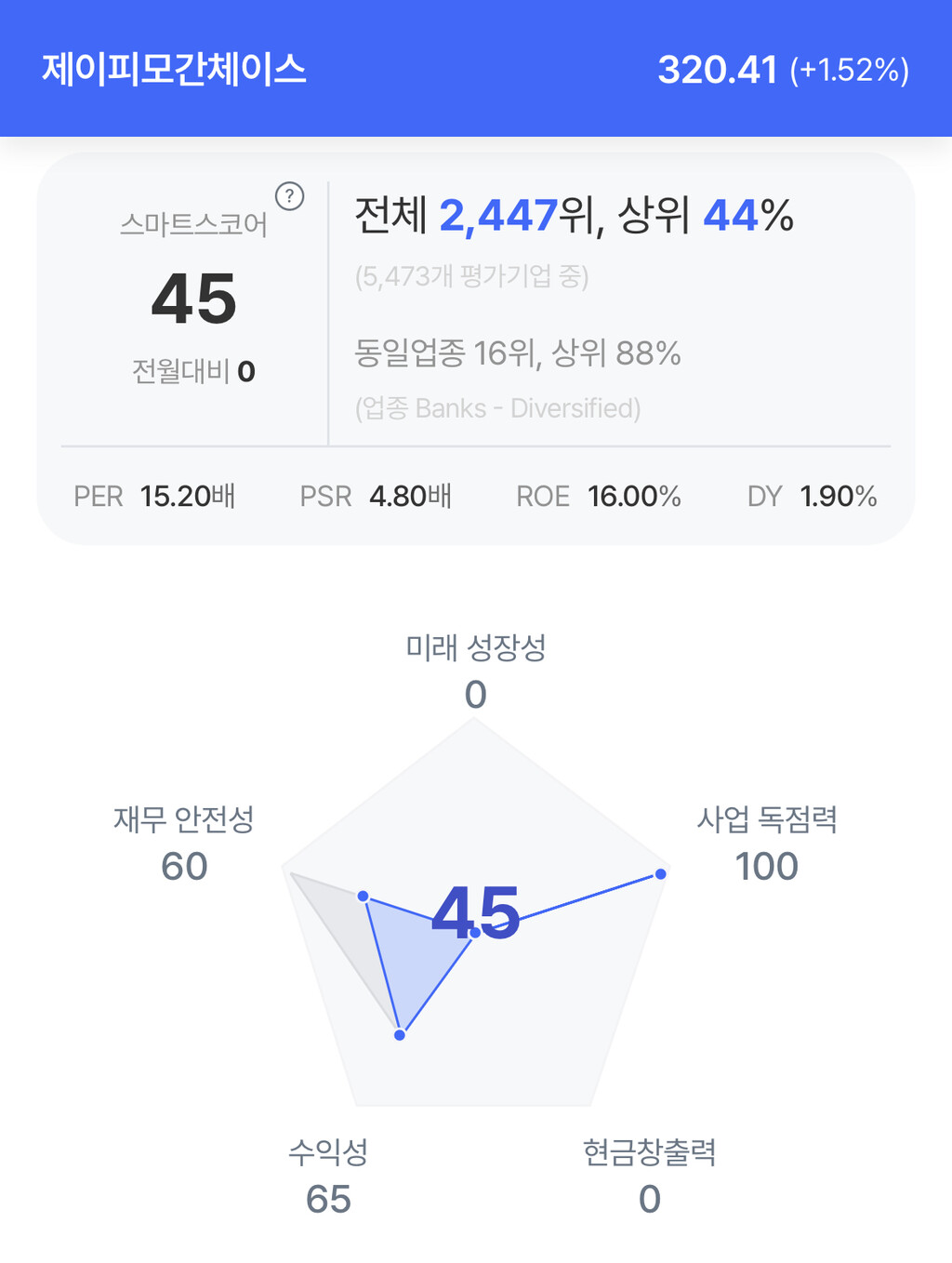 | JP모건체이스 주가 분석. (자료=초이스스탁) |