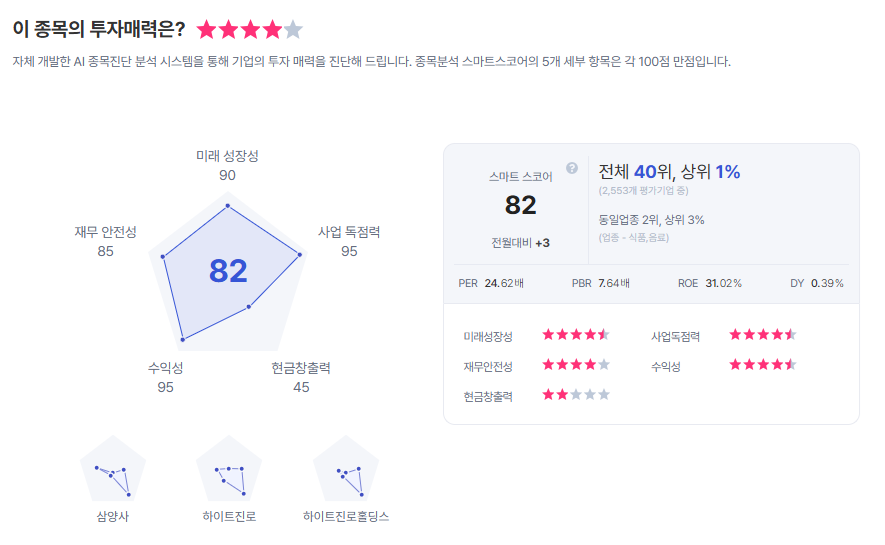 | 삼양식품 종목진단 (출처=초이스스탁) |