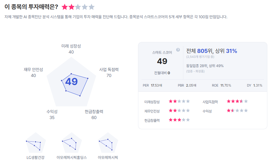 | 한국콜마 종목진단 (출처=초이스스탁) |