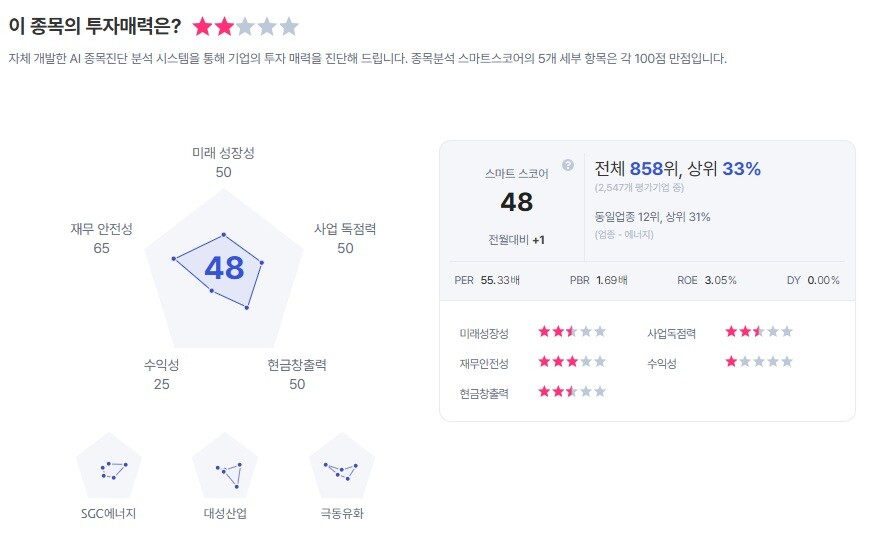 | SK오션플랜트 종목진단 (출처=초이스스탁) |