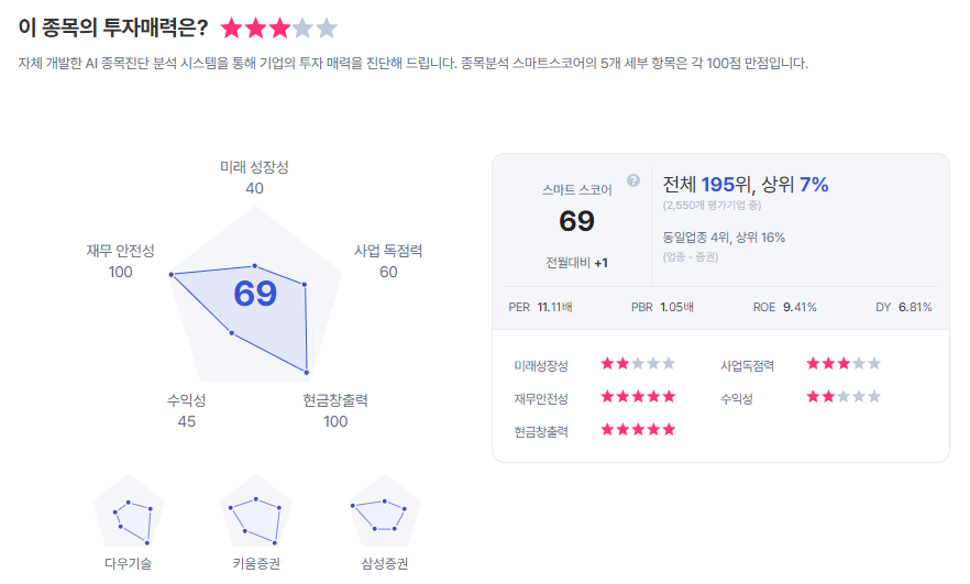 | NH투자증권 종목진단 (출처=초이스스탁) |