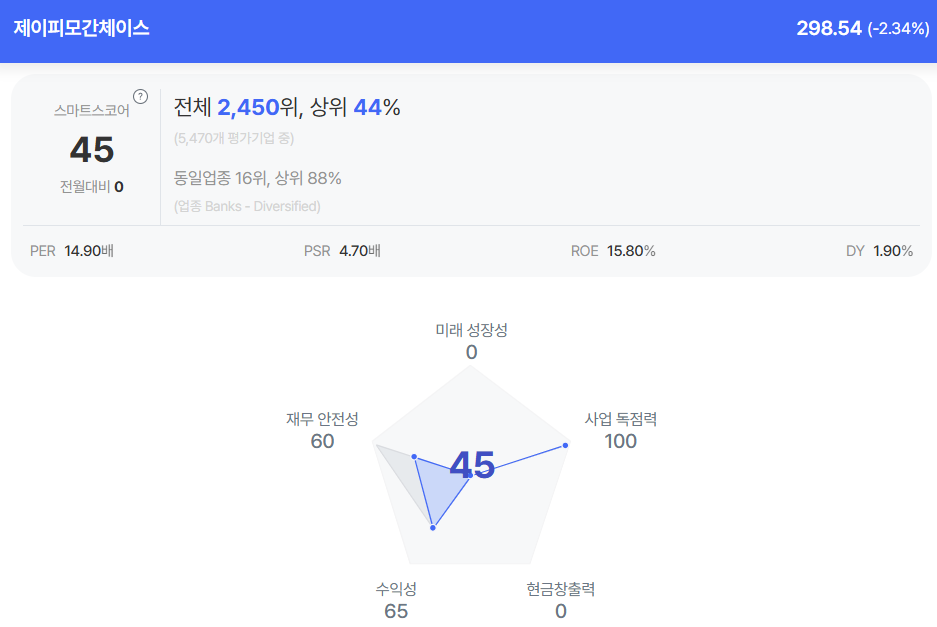 제이피모간체이스 종목진단 (출처=초이스스탁)