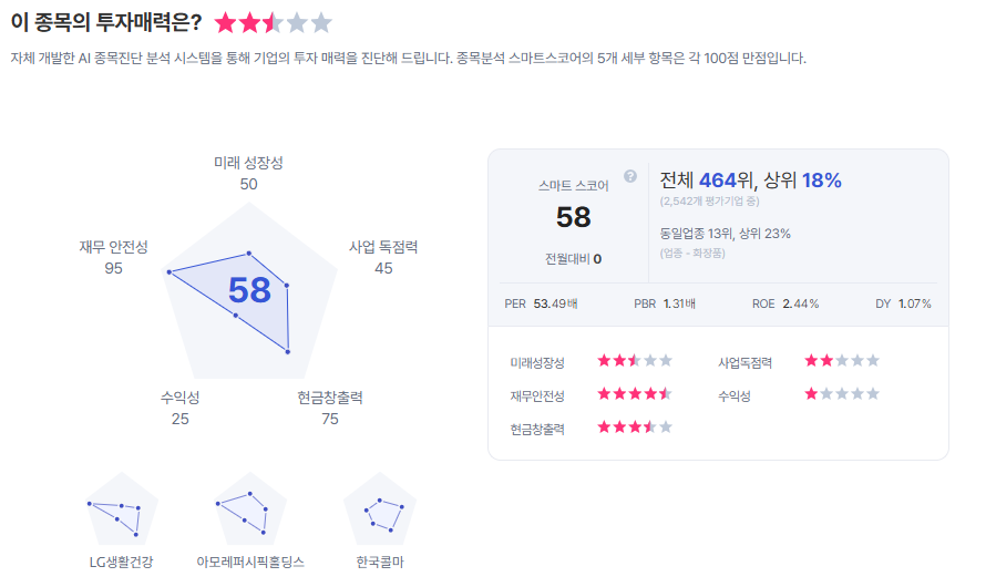 | 아모레퍼시픽 종목진단 (출처=초이스스탁) |
