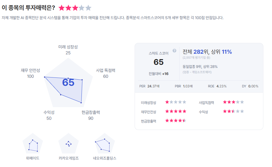 | 네오위즈 종목진단 (출처=초이스스탁) |