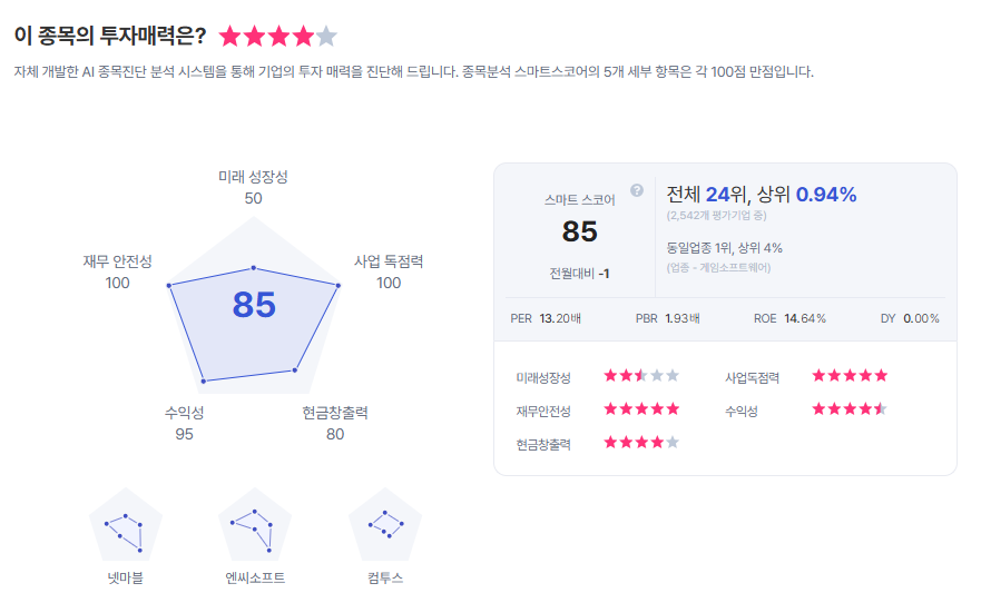| 크래프톤 종목진단 (출처=초이스스탁) |