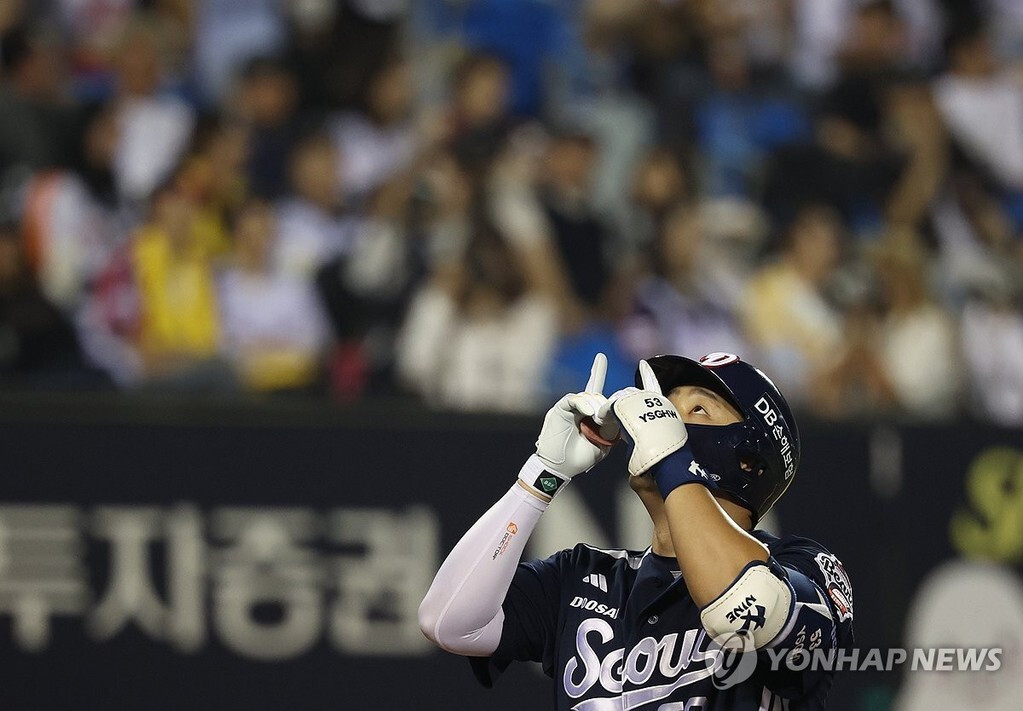 사진 = 양석환 투런홈런 (서울=연합뉴스)