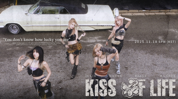 키스오브라이프는 지난 13일 0시 공식 채널을 통해 디지털 싱글 'Lucky (Korean Ver.)'의 커밍순 포스터를 공개하며 컴백을 알렸다. 공개된 포스터에는 올드카와 도로를 배경으로 에지 있는 포즈와 강렬한 눈빛을 선보이는 키스오브라이프 멤버들의 모습이 담겨 있다.
