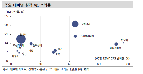 2차전지, 태양광·풍력·수소, 조선 기자재·엔진, 원자력은 강한 흐름이 이어지고 있으나 지금 단계에서 기술적 부담을 도외시하기도 어려운 상황이란 진단이다.