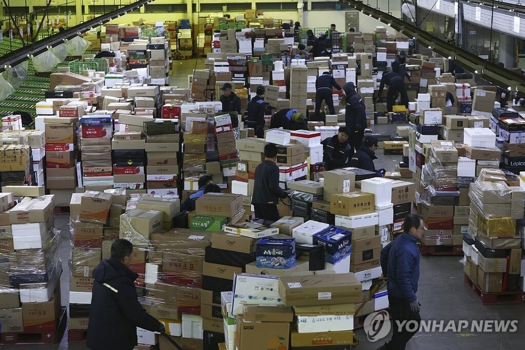 | 설 명절을 앞둔 11일 서울 광진구 동서울우편물류센터에서 작업자들이 택배 분류작업을 하고 있다. (사진=연합뉴스) |