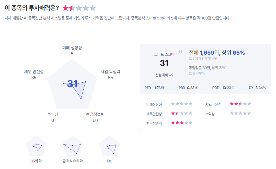 | 롯데케미칼 종목진단 (출처=초이스스탁) |