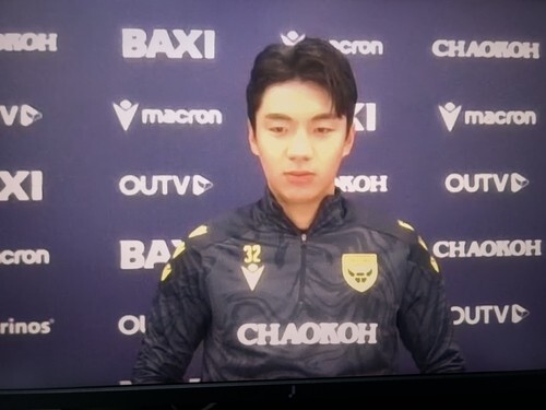 | 사진 = 한국 취재진과 화상 인터뷰하던 전진우 [화상 인터뷰 캡처-연합뉴스] |