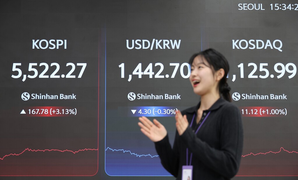 12일 코스피는 전 거래일보다 167.78포인트(3.13%) 급등한 5522.27에 거래를 마쳤습니다.