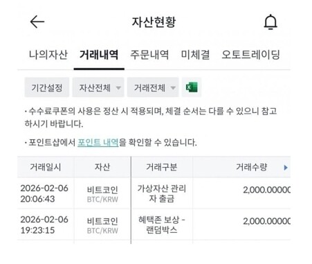 단순 계산으로도 1인당 약 1900억 원이 넘는 천문학적인 금액이 잘못 지급된 셈이다. 실제로 온라인 커뮤니티에는 비트코인 2000개 입금 내역과 함께 계좌 잔고가 1944억 원으로 표기된 자산 현황 화면이 잇따라 게시됐다.